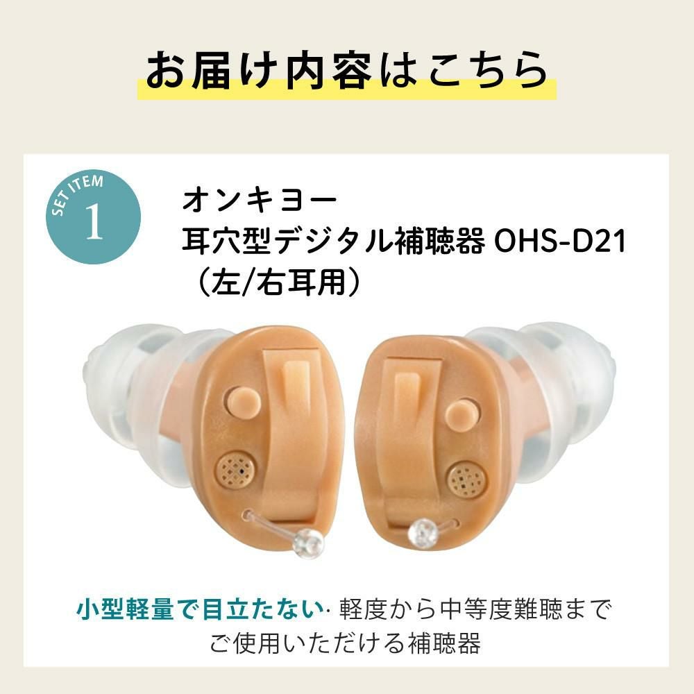 他の画像を見る 軽度~中等度難聴 聴力に不安を覚え始めた方、幅広い聴力の方におすすめします。 オンキヨー 補聴器 デジタル耳あな型補聴器 OHS-D21L ベージュ 左耳用 非課税 電池 PR41×10パック+クロス+乾燥カップセット 販売価格 ¥ 29,800 税込 カートに入れる お気に入りに登録する (0件)