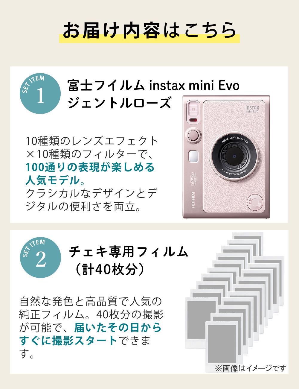 他の画像を見る 高画質チェキ instax mini Evo GENTLE ROSE。スマホ連携で簡単プリント、10種類のレンズ&フィルムエフェクトで多彩な表現を楽しむハイブリッドチェキ。 富士フイルム チェキ instax mini Evo GENTLE ROSE ジェントルローズ microSD32GB フィルム40枚 デコペン 付4点セット 販売価格 ¥ 45,700 税込 カートに入れる お気に入りに登録する (0件)