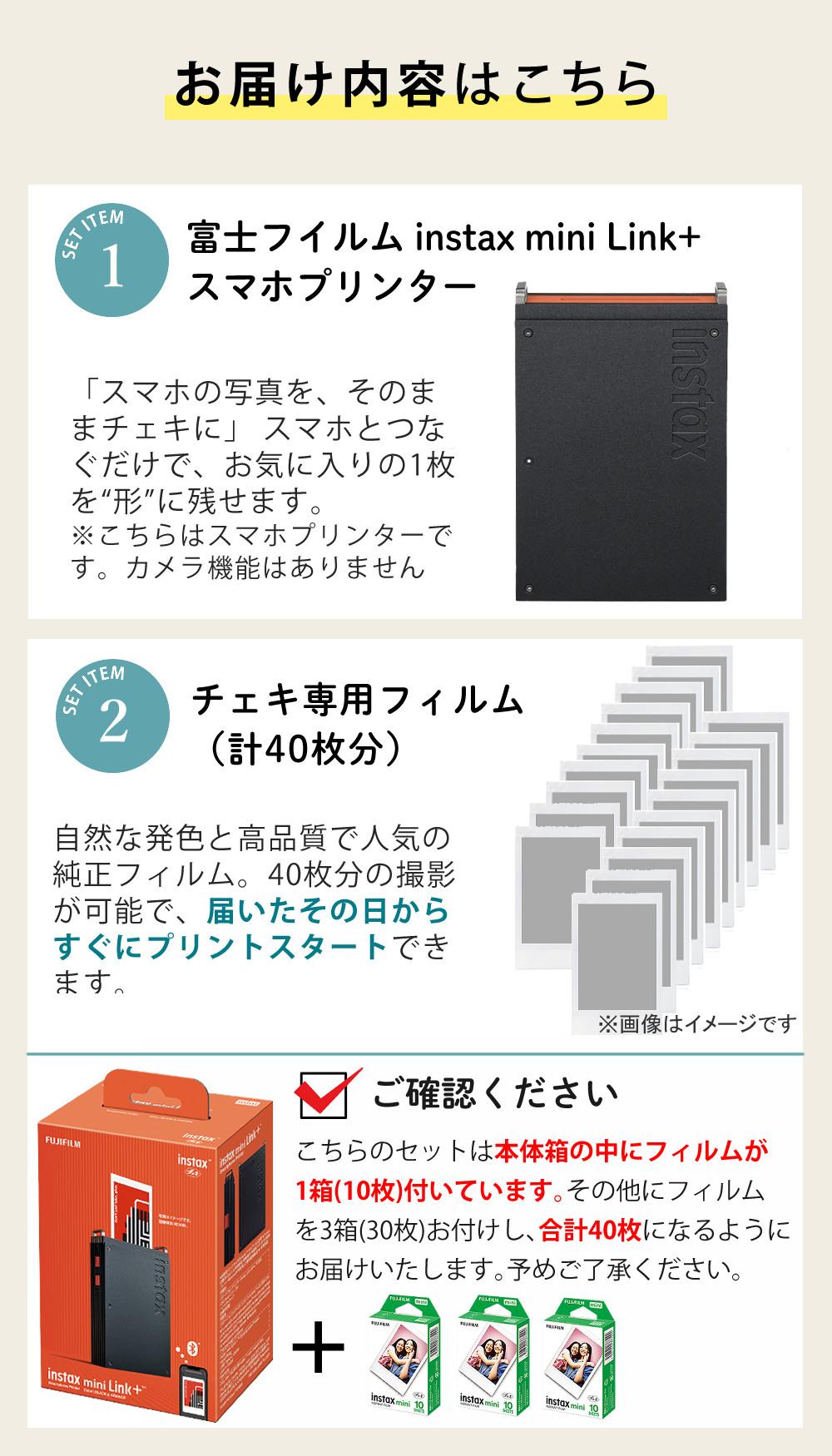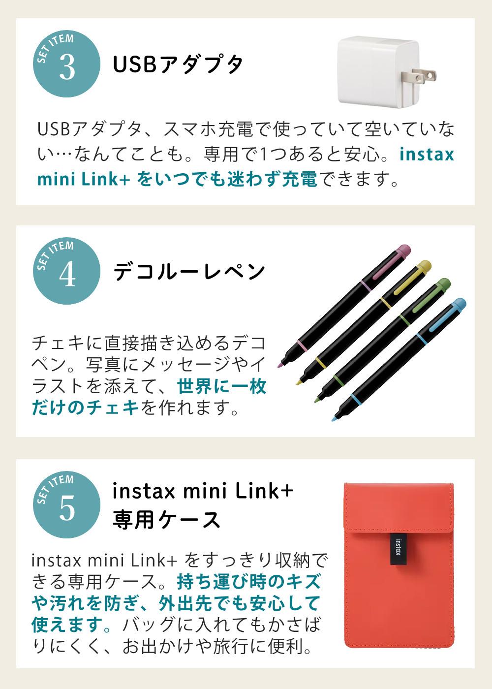 他の画像を見る 文字や細かい絵柄など細部をよりくっきり表現 富士フイルム INS MINI LINK PLUS B スマホプリンター チェキ instax mini Link+ (16949624)&USBアダプタ&デコペン&フィルム40枚&専用ケース 付5点セット クーポン対象外 販売価格 ¥ 31,400 税込 カートに入れる お気に入りに登録する (0件)
