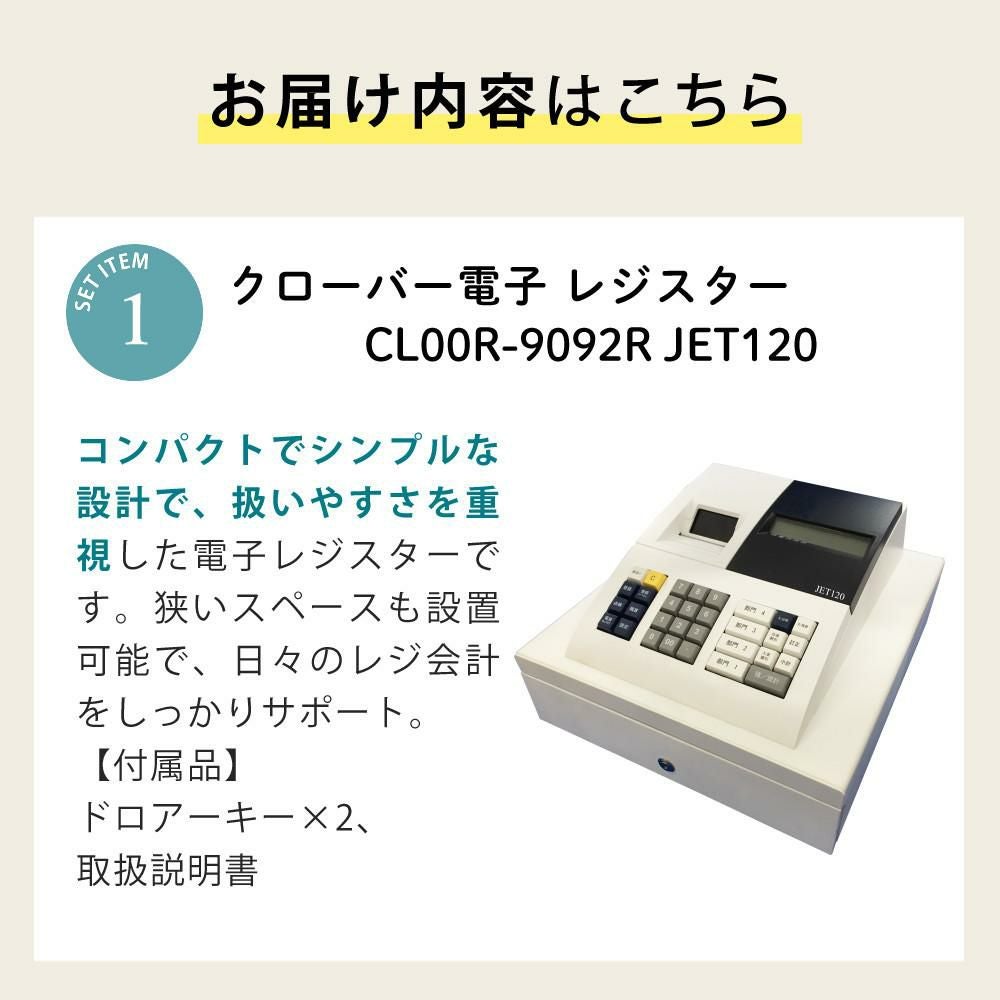 他の画像を見る 操作かんたん!飲食店・美容室・小売店に最適な小型業務用レジスター。軽量で持ち運びも楽々 クローバー電子 レジスター 小型 JET120 レジロール 単3電池付セット(ラッピング不可)(熨斗対応不可) 販売価格 ¥ 15,180 税込 カートに入れる お気に入りに登録する (0件)