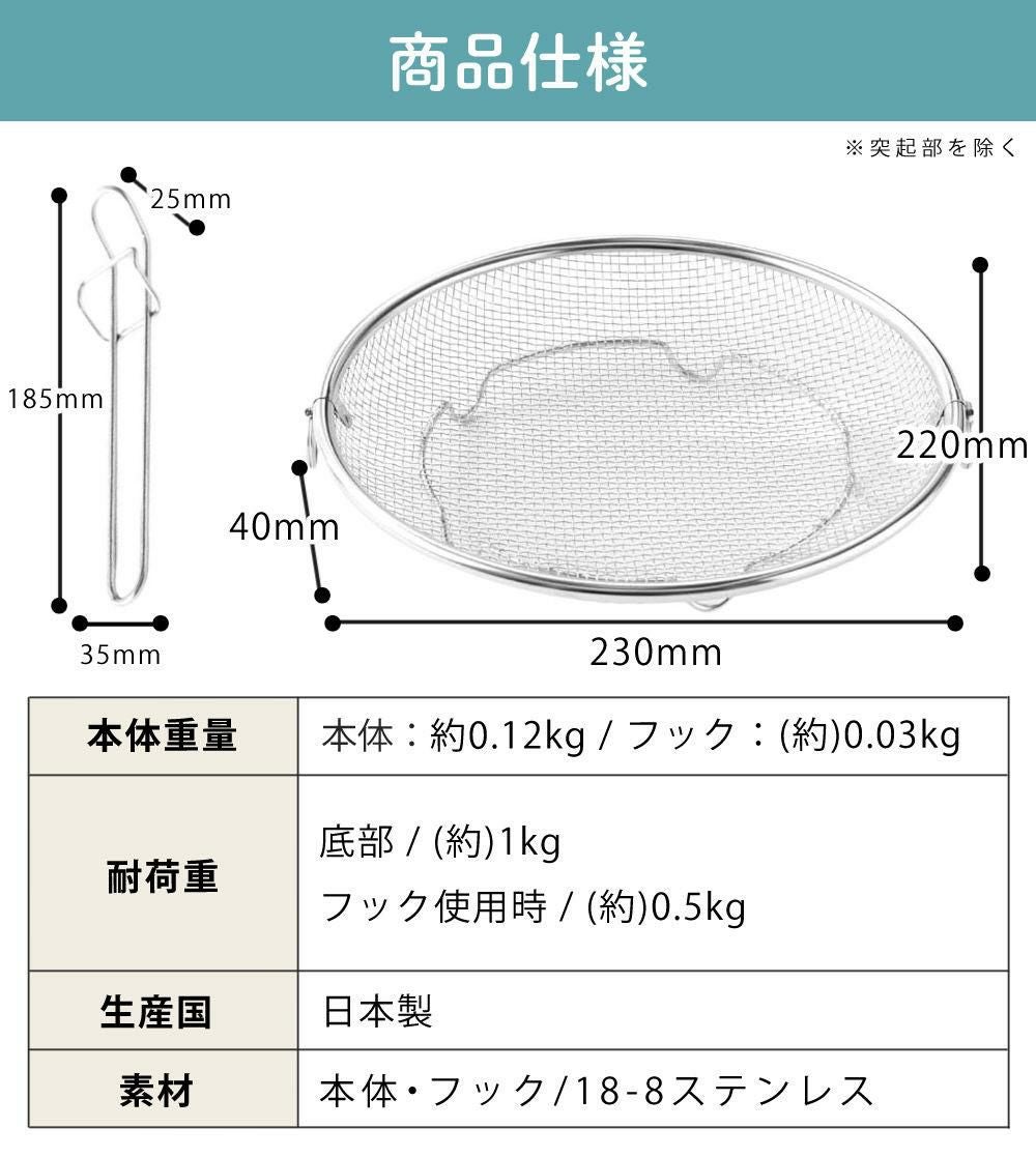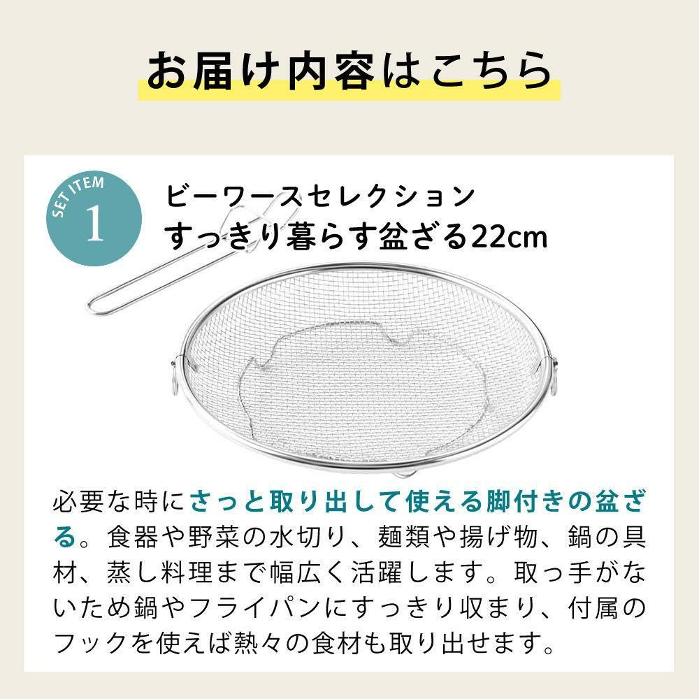 他の画像を見る ビーワースセレクション すっきり暮らす盆ざる22cm 持ち上げフック付き 調理器具4点セット(ラッピング不可) 販売価格 ¥ 7,252 税込 カートに入れる お気に入りに登録する (0件)