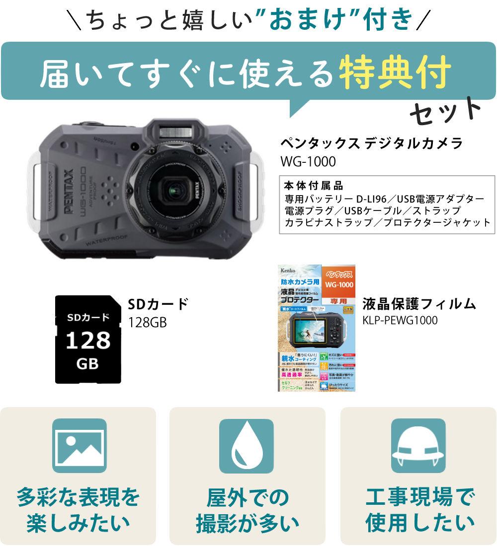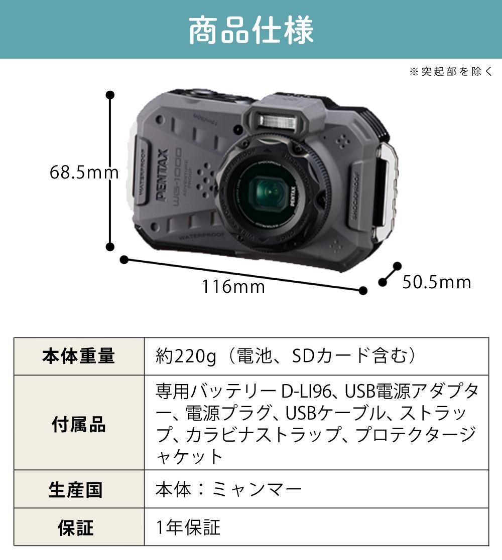 他の画像を見る ( 本格防水アウトドアカメラ ) ペンタックス デジタルカメラ WG-1000 グレー 液晶保護フィルム&SDカード付き 3点セット(レビュー特典あり) 販売価格 ¥ 36,400 税込 カートに入れる お気に入りに登録する (0件)