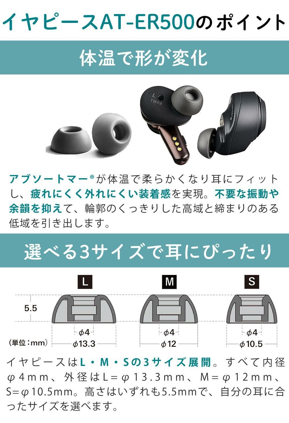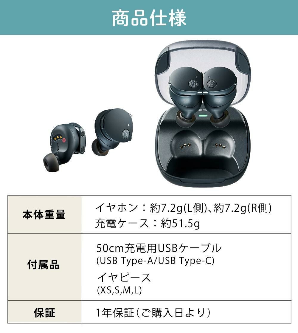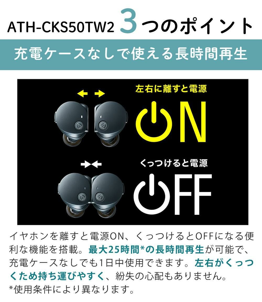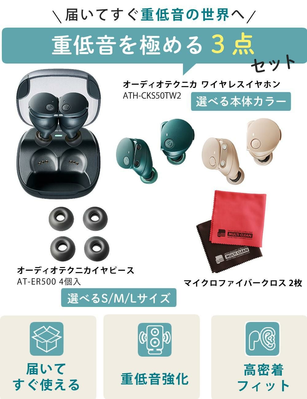 他の画像を見る イヤホン?単体 約7.2g 充電ケース 約51.5g トラガスホールドデザイン 通話 ノイズリダクション ヒアスルー機能 トークスルー機能 専用アプリ Connect 左右分離型 オーディオテクニカ ワイヤレスイヤホン 完全ワイヤレスイヤホン ブラック/ベージュ/グリーン ATH-CKS50TW2 AT-ER500付 3点セット(ラッピング不可) 販売価格 ¥ 24,800 税込 カートに入れる お気に入りに登録する (0件)