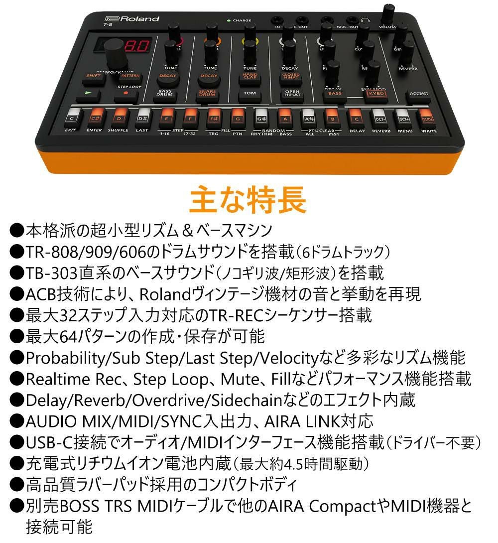 他の画像を見る エフェクト Delay Reverb Overdrive Sidechain ポータブル音楽制作 7トラック Roland サンプラー AIRA Compact T-8 Beat Machine 音楽制作 S-1 RCC-5-3535付 2点セット(ラッピング不可) 販売価格 ¥ 28,380 税込 カートに入れる お気に入りに登録する (0件)