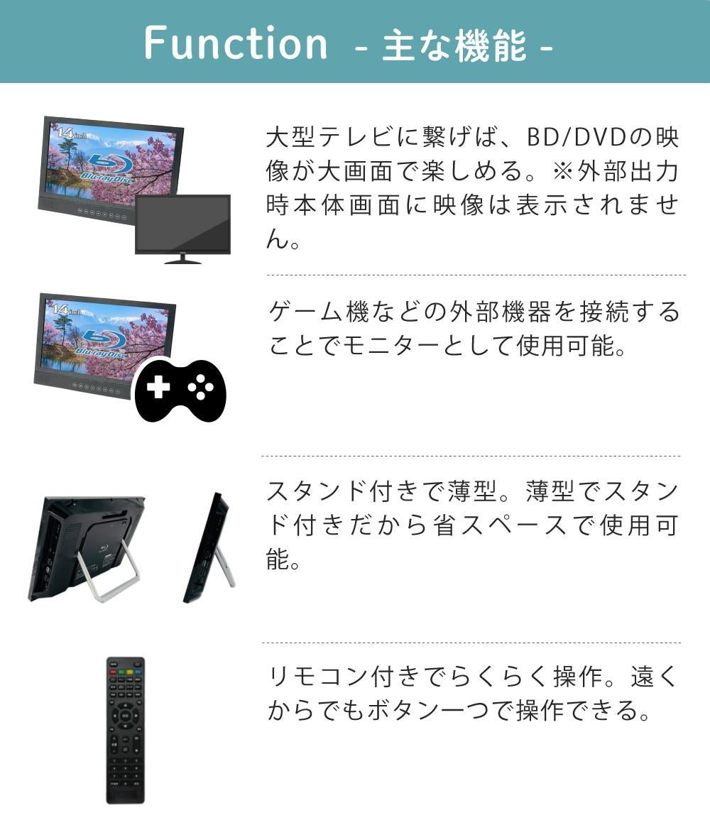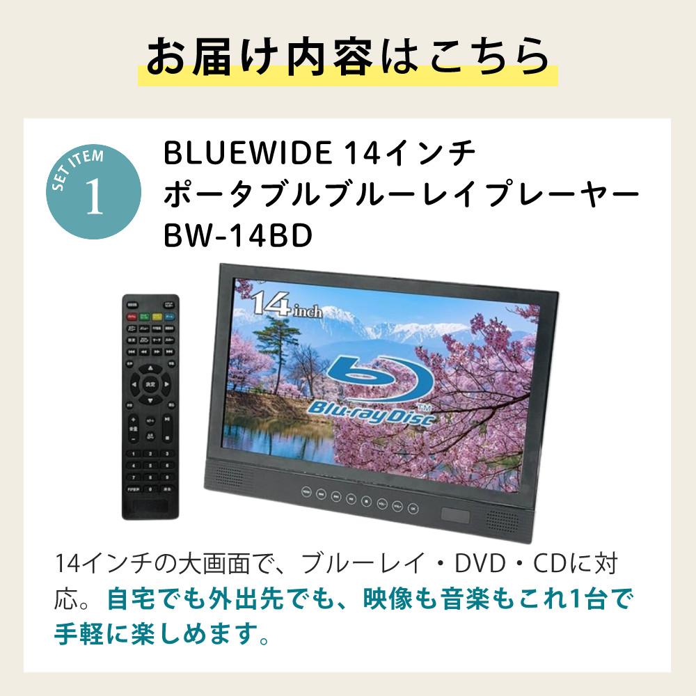 他の画像を見る HDMIケーブル・保護フィルム付き BLUEWIDE BLUEWIDE ポータブルブルーレイプレーヤー 14インチ FHD ブルーレイ HDMI BW-14BD HDMIケーブル・保護フィルム付 3点セット(ラッピング不可) 販売価格 ¥ 39,800 税込 カートに入れる お気に入りに登録する (0件)