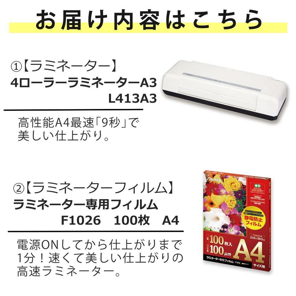 他の画像を見る 電源ONしてから仕上がりまで1分!速くて美しい仕上がりの高速ラミネーター アスカ 4ローラー ラミネーター L413A3 ラミネーター専用フィルム付き(ラッピング不可) 週末2%OFFクーポン 販売価格 ¥ 22,500 税込 カートに入れる お気に入りに登録する (0件)