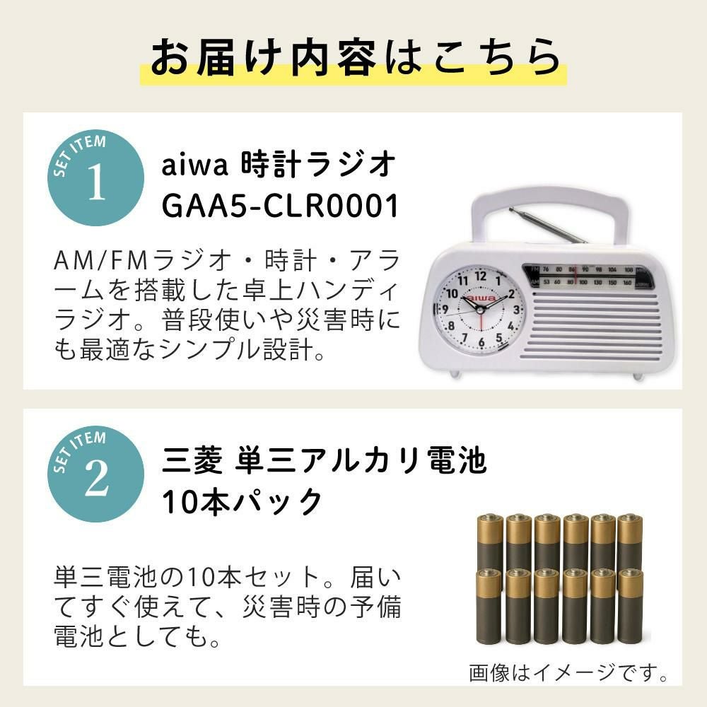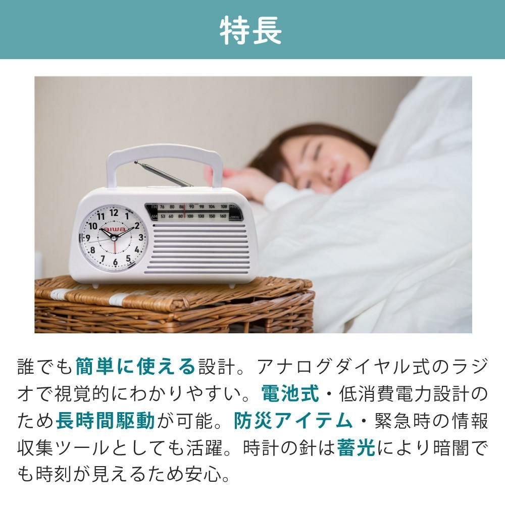 他の画像を見る ラジオ 防災ラジオ 目覚まし ワイドFM 電池式 防災グッズ 小型 レトロ 卓上 aiwa 防災ラジオ 時計ラジオ 防災グッズ 電池式 ラジオ GAA5-CLR0001 Clock Radio&単三アルカリ電池10本 週末2%OFFクーポン 販売価格 ¥ 6,980 税込 カートに入れる お気に入りに登録する (0件)