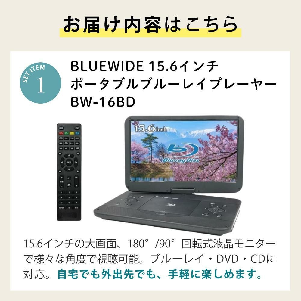 他の画像を見る HDMIケーブル・保護フィルム付き BLUEWIDE (HDMIケーブル・保護フィルム付き)BLUEWIDE ポータブルブルーレイプレーヤー BW-16BD 15.6インチ FHD ブルーレイ再生 大画面(ラッピング不可) 週末2%OFFクーポン 販売価格 ¥ 41,800 税込 カートに入れる お気に入りに登録する (0件)