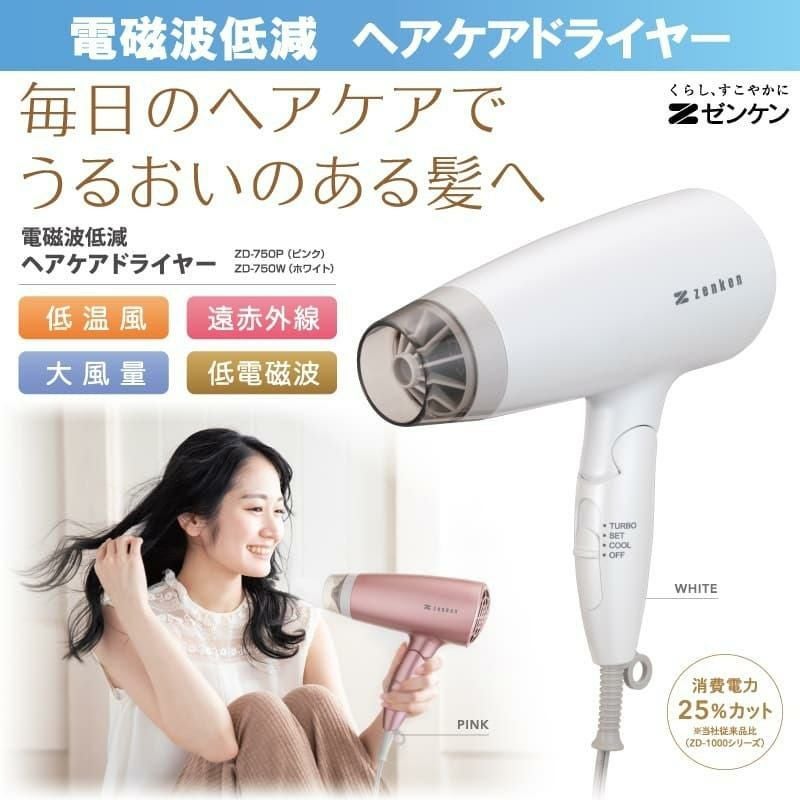 他の画像を見る ドライヤー ヘアドライヤー 速乾 低温 マイナスイオン ゼンケン ヘアケアドライヤー 電磁波低減 ZD-750W ホワイト ZD-750P ピンク 0359 ヘアドライタオル付 2点セット 販売価格 ¥ 13,205 税込 カートに入れる お気に入りに登録する (0件)