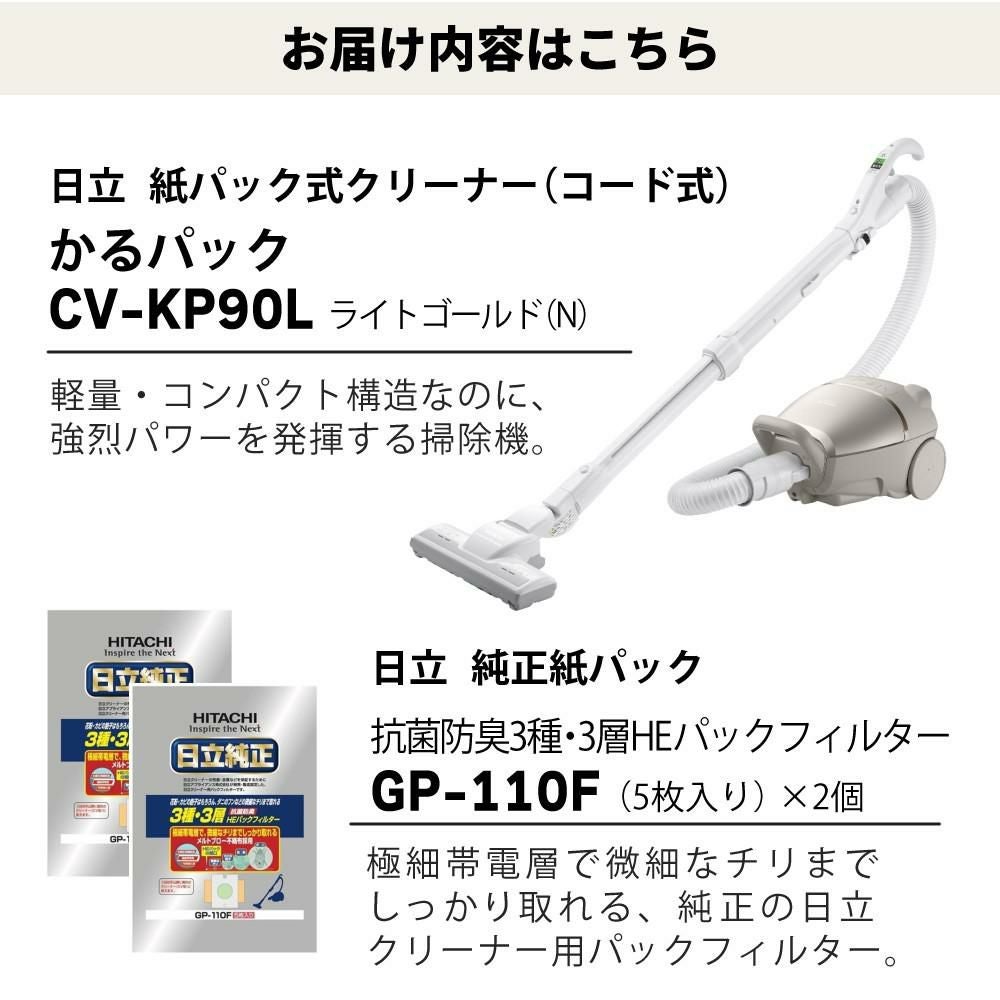 他の画像を見る 強烈な吸引力で軽々キレイにできる。小型・軽量ボディ&強烈パワー。本体&紙パックGP-110F(5枚入り)2個セット。 日立 掃除機 紙パック式 クリーナー かるパック ライトゴールド CV-KP90L&紙パック(5枚入) GP-110F 2個(ラッピング不可) クーポン対象外 販売価格 ¥ 22,800 税込 カートに入れる お気に入りに登録する (0件)