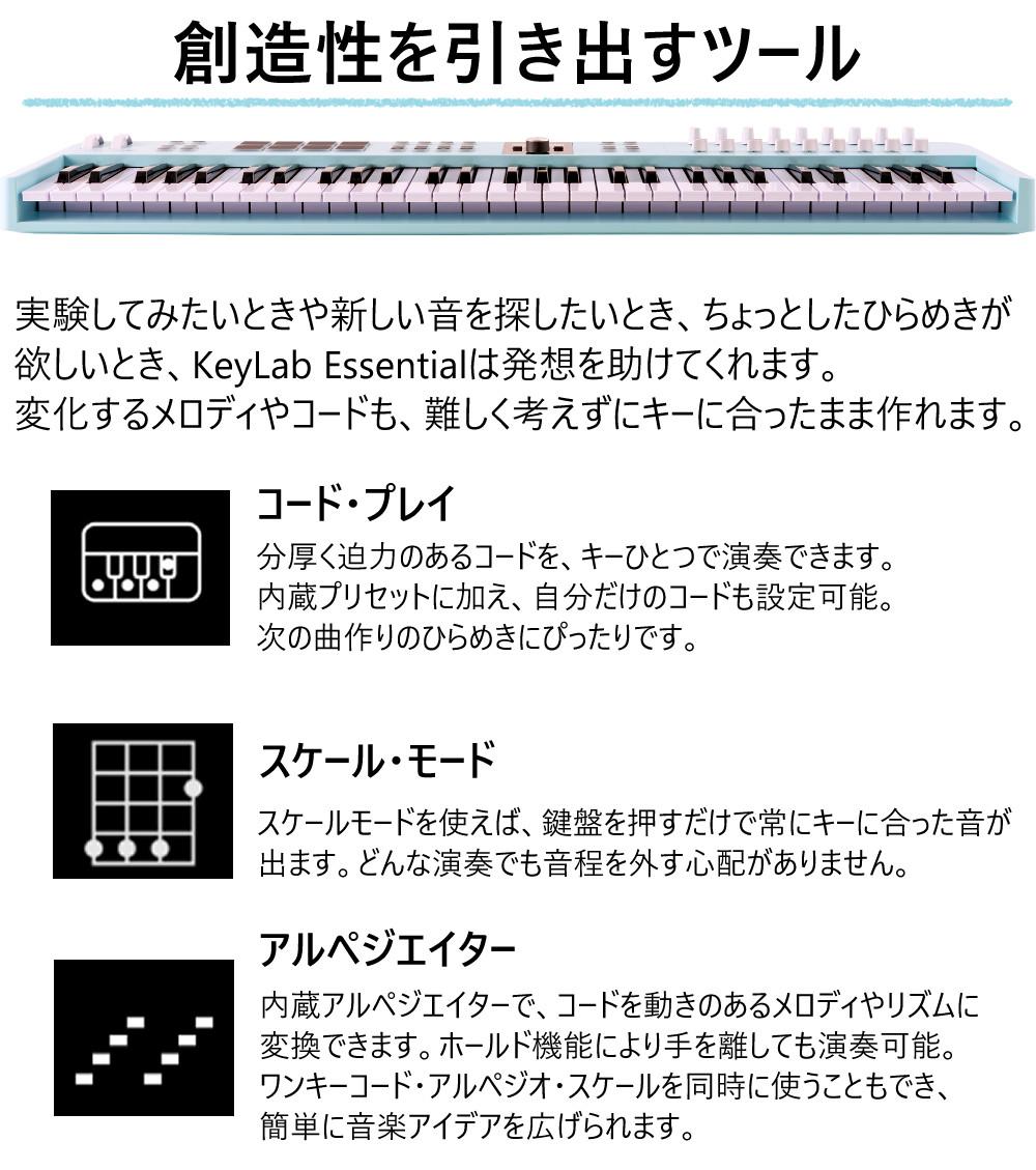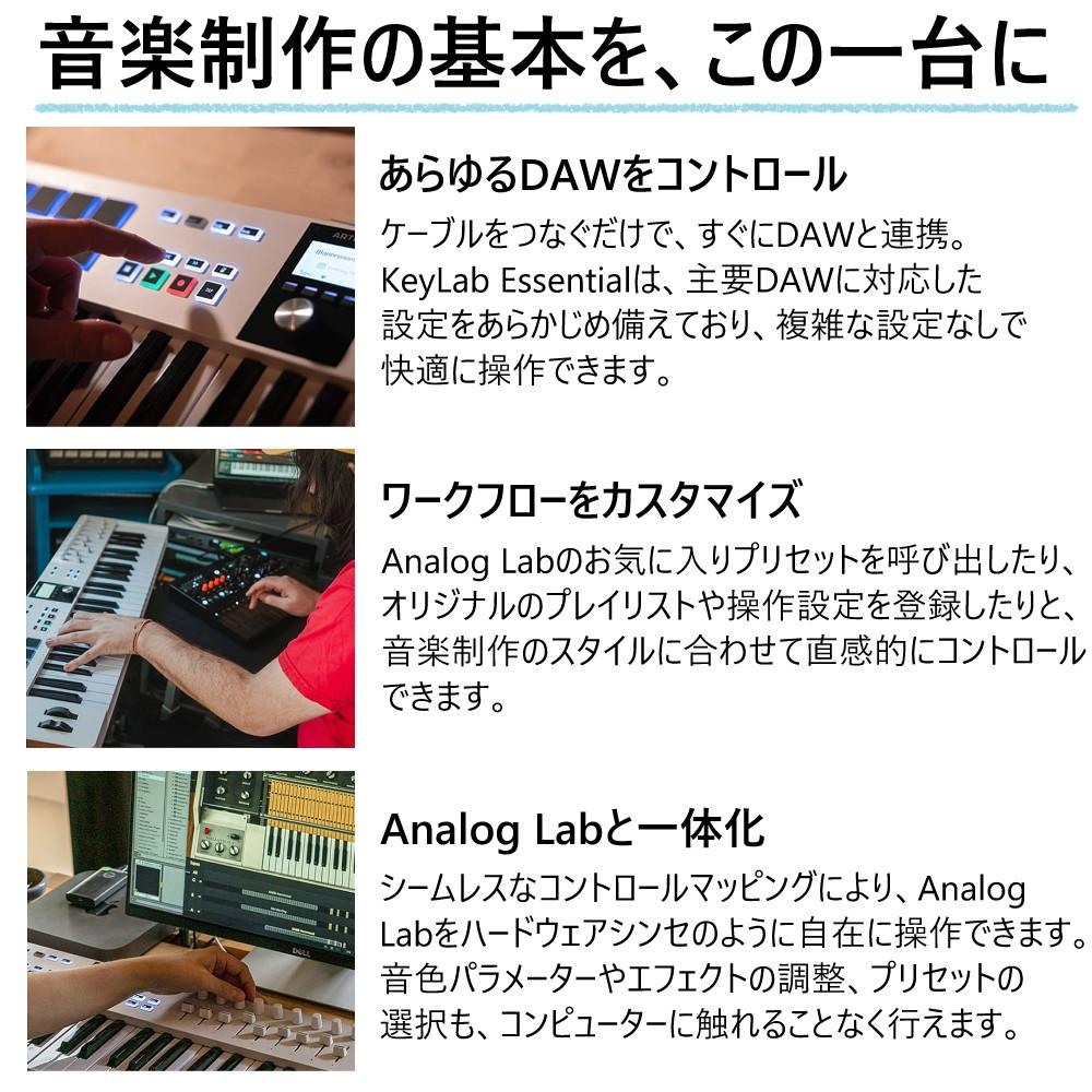 他の画像を見る 演奏の自由を、手の中に。KeyLab Essentialで、 音楽制作の無限の可能性を解き放つ。 音楽制作 DAWコントローラー MIDIコントローラー ARTURIA MIDI キーボード コントローラー KeyLab Essential 61 mk3 AQ Arturia(ラッピング不可) 8日3%OFFクーポン 販売価格 ¥ 39,600 税込 カートに入れる お気に入りに登録する (0件)