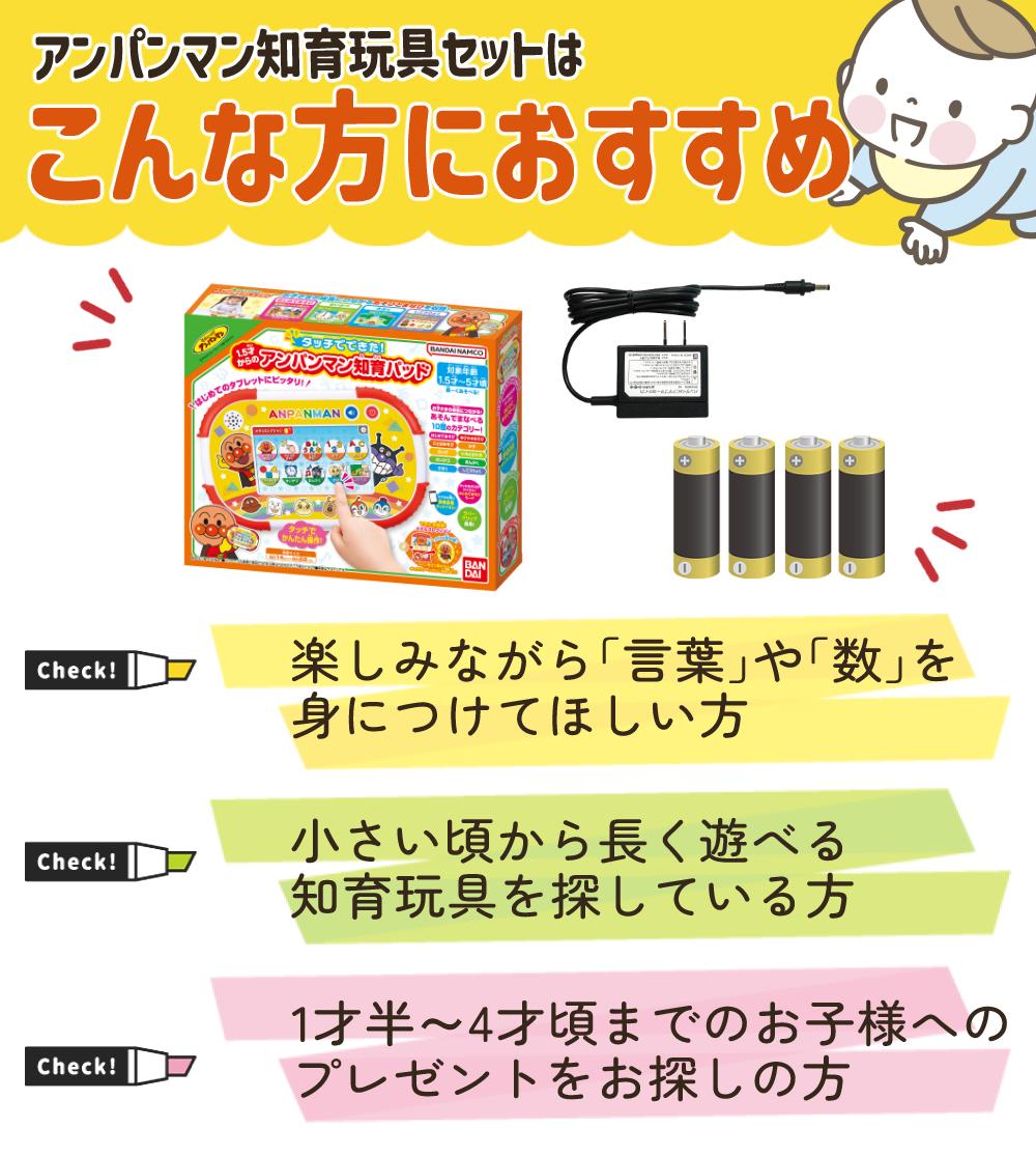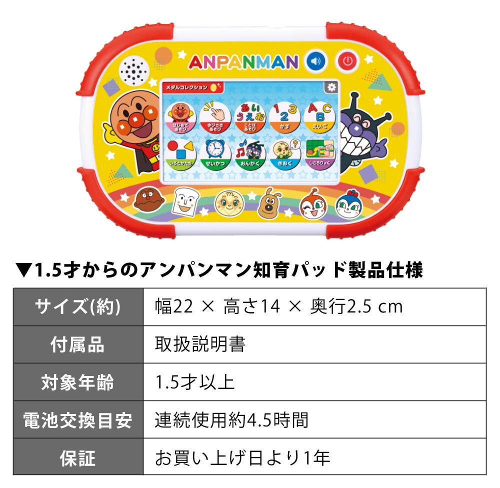 他の画像を見る アンパンマンの知育あそびを1台に収録 ことば えいご かず いろとかたち おんがく対応のタッチあそび 1歳半 2歳 3歳 4歳 5歳 アンパンマン バンダイ 知育パッド 1.5歳から アダプタ 電池 セット 販売価格 ¥ 18,300 税込 在庫切れ 詳細を見る お気に入りに登録する (0件)