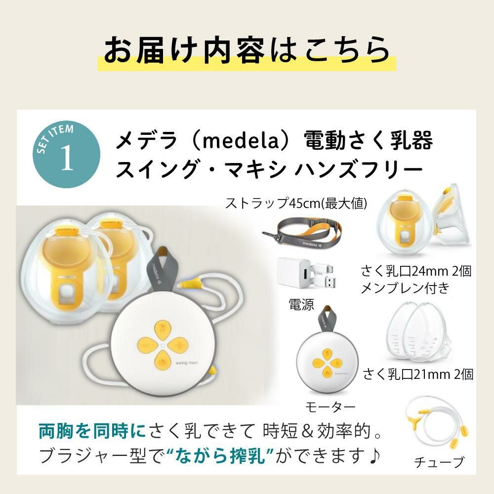 他の画像を見る 搾乳器 さく乳器 電動 両胸 コンパクト ハンズフリー 軽量 持ち運び メデラ 搾乳機 電動 両胸用 スイング・マキシ ハンズフリー はじめて3点セット 販売価格 ¥ 28,310 税込 カートに入れる お気に入りに登録する (0件)