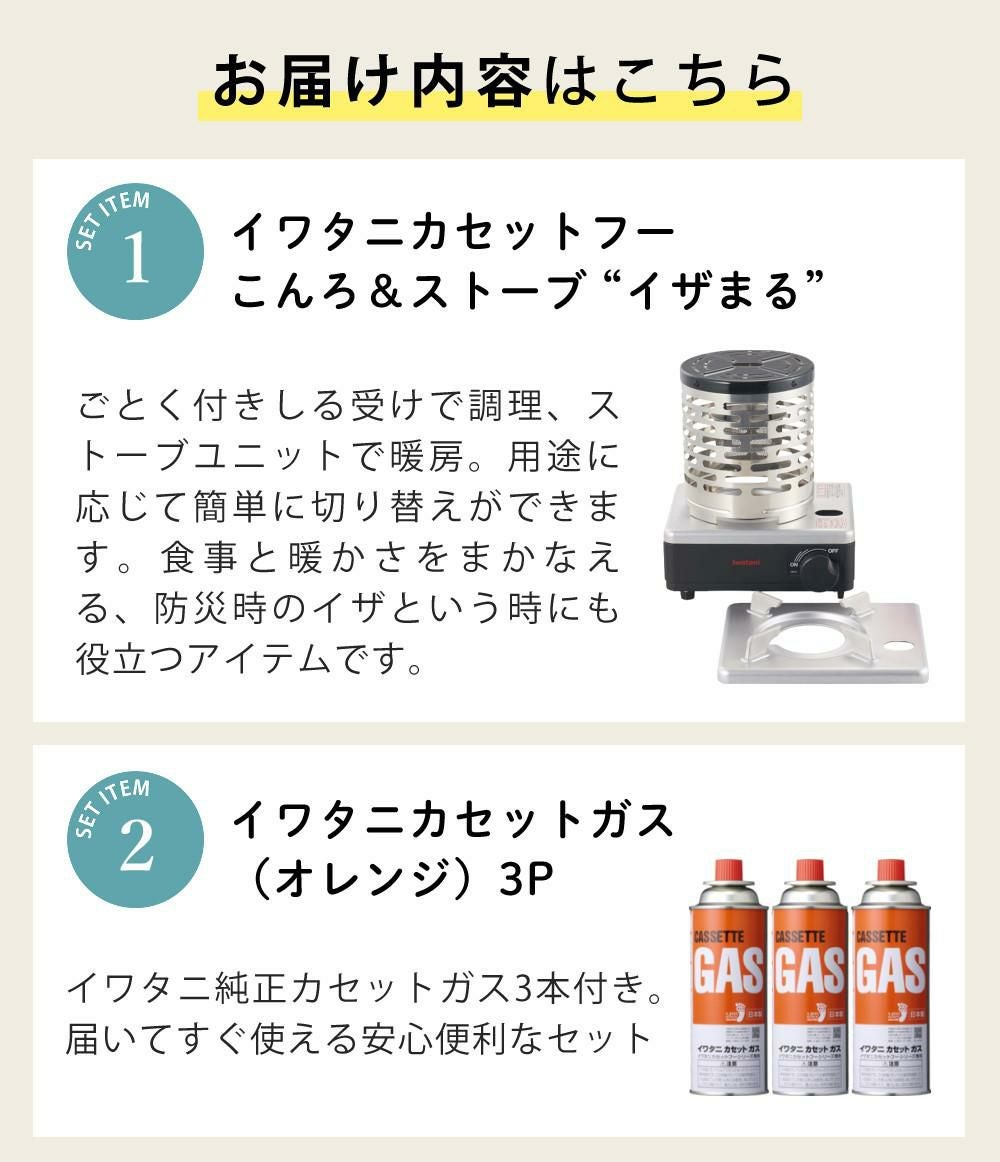 他の画像を見る 岩谷産業 ストーブにもなるカセットこんろ 日常使いから防災まで 幅広く対応 新生活 災害への備え プレゼントにも おすすめです イワタニ カセットフー こんろ&ストーブ イザまる CB-IZ-1 カセットガス 3本セット 販売価格 ¥ 14,700 税込 カートに入れる お気に入りに登録する (0件)