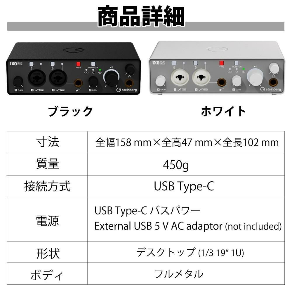 他の画像を見る 軽量でコンパクトなボディ、抜群の音質、操作性で ハイクオリティな録音や制作を行えます。 スタインバーグ USB IXO22 オーディオインターフェイス キャノンケーブル セット(ラッピング不可) 8日3%OFFクーポン 販売価格 ¥ 26,800 税込 在庫切れ カートに入れる お気に入りに登録する (0件)