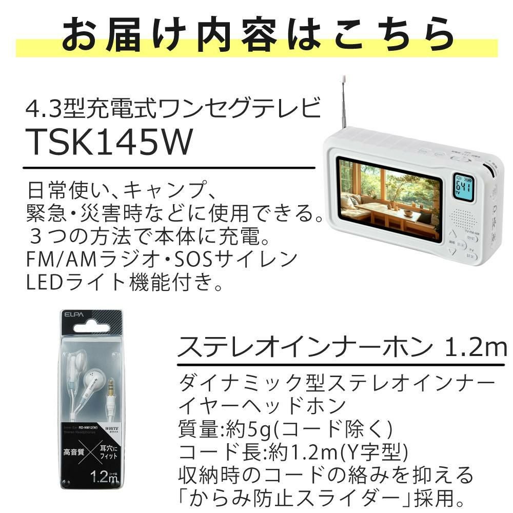 他の画像を見る 日常使い、キャンプ、緊急・災害時などに使用できるワンセグテレビ。避難所等でも使用できるイヤホン付き。 多摩電子工業 ワンセグテレビ 多機能ワンセグテレビ TSK145W イヤホン付き 2点セット 8日3%OFFクーポン 販売価格 ¥ 17,900 税込 在庫切れ 詳細を見る お気に入りに登録する (0件)