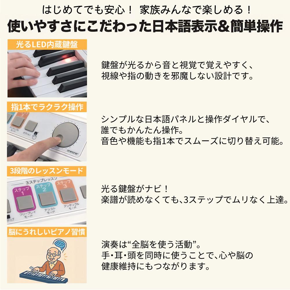 他の画像を見る 音楽習慣 全脳 活動 脳 健康維持 オプション機能 クリック音 伴奏ボリューム調整 コードモード変更 リズムモード変更 トランスポーズ ±6 乾電池別売 家族全員 演奏力育成 成功体験 ONETONE ワントーン FamilyPiano OTFP-100 キーボードバッグ & カバー& スタンド セット(ラッピング不可) 8日3%OFFクーポン 販売価格 ¥ 39,800 税込 在庫切れ 詳細を見る お気に入りに登録する (0件)