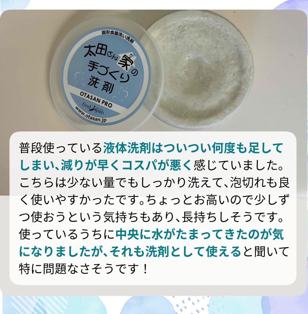 他の画像を見る 固形食器洗い洗剤 手肌にやさしいのに洗浄力が高い (5個セット)太田さん家の手づくり洗剤 PRO プロ 130g 食器用洗剤 固形 販売価格 ¥ 4,480 税込 カートに入れる お気に入りに登録する (0件)