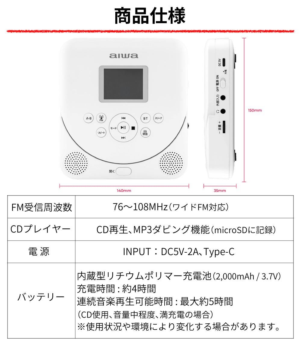他の画像を見る CDプレーヤー ポータブル Bluetooth コンパクト CDプレイヤー CDラジオ cd ダビング プレーヤー aiwa ポータブル CDプレーヤー GAA5-PCD0001 スピーカー内蔵 ダビング 週末2%OFFクーポン 販売価格 ¥ 11,000 税込 カートに入れる お気に入りに登録する (0件)