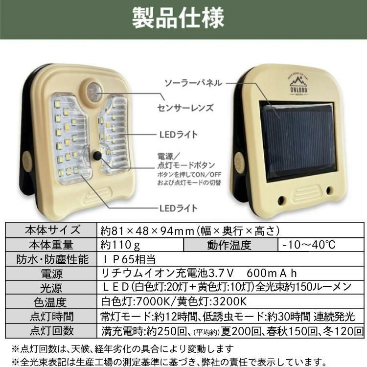 他の画像を見る 手軽に持ち歩け、どこでもクリップ式で簡単に取り付け!明るさ調節可能なソーラーLEDセンサーライト。虫を引き寄せにくい低誘虫モード付きでアウトドアも安心。省エネで環境に優しい! オンスクエア ソーラー充電式 クリップ型 センサーライト クリッパアクティブ OL-338D 週末2%OFFクーポン 販売価格 ¥ 3,180 税込 カートに入れる お気に入りに登録する (0件)