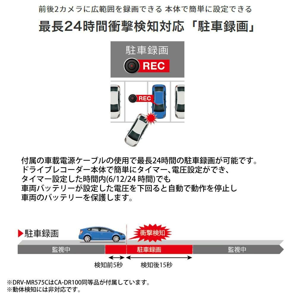 他の画像を見る いつでも鮮明、高画質。 ケンウッド 前後撮影対応 2カメラドライブレコーダー DRV-MR575C Gシリーズ(ラッピング不可)(熨斗対応不可) 週末2%OFFクーポン 販売価格 ¥ 21,755 税込 在庫切れ 詳細を見る お気に入りに登録する (0件)