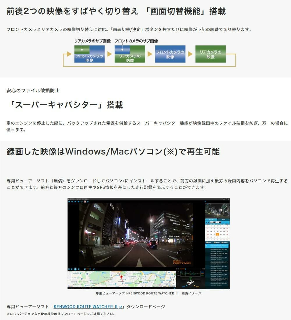他の画像を見る いつでも鮮明、高画質。 ケンウッド DRV-G50W 前後撮影対応 2カメラ ドライブレコーダー(ラッピング不可)(熨斗対応不可) 週末2%OFFクーポン 販売価格 ¥ 26,077 税込 在庫切れ 詳細を見る お気に入りに登録する (0件)