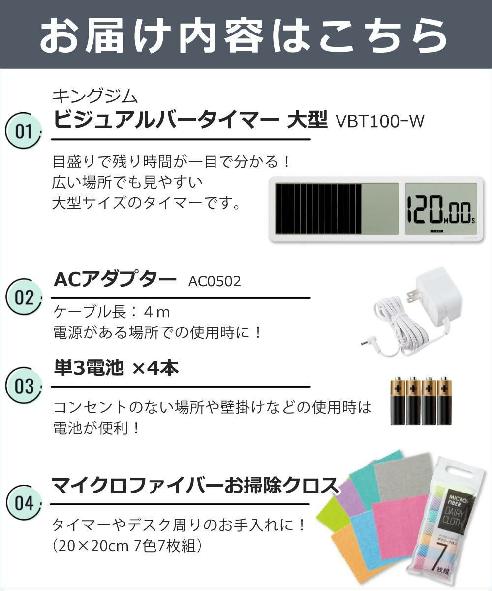 他の画像を見る 学校 の 授業 や 試験 時間管理 、オフィス の 会議 プレゼン などで活躍 (レビュー記入でコーヒー)キングジム ビジュアルバータイマー 大型 VBT100-W アダプタ&単三電池4本&クロス付き 4点セット(ラッピング不可) 販売価格 ¥ 21,800 税込 在庫切れ 詳細を見る お気に入りに登録する (0件)