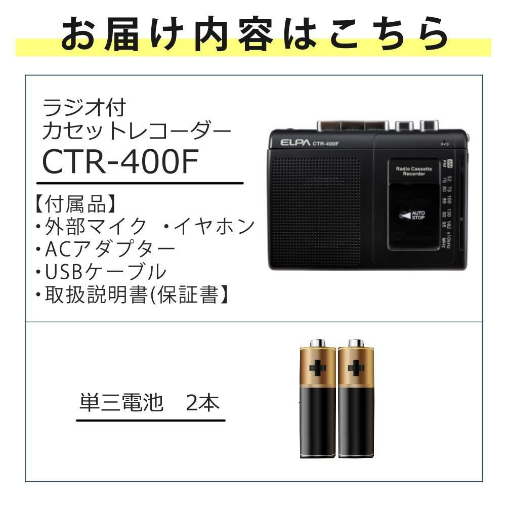 他の画像を見る 簡単操作でカセットテープの録音・再生ができます。 ELPA ラジオ付カセットテープレコーダー CTR-400F カセットテープ 単3電池付 3点セット 8日3%OFFクーポン 販売価格 ¥ 6,780 税込 在庫切れ 詳細を見る お気に入りに登録する (0件)