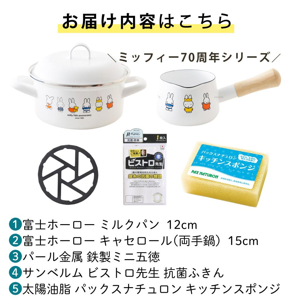 他の画像を見る ミッフィー70周年限定デザインのホーロー製用品でキッチンを彩ります レトロ な 紺色 デザイン と ミッフィー柄 の 組み合わせがおしゃれで プレゼント や 贈り物 におすすめです 富士ホーロー ミッフィー70周年シリーズ 片手鍋 ミルクパン MF70-12M 両手鍋 キャセロール MF70-15W 五徳 ふきん スポンジ 5点セット クーポン対象外 販売価格 ¥ 7,130 税込 在庫切れ 詳細を見る お気に入りに登録する (0件)