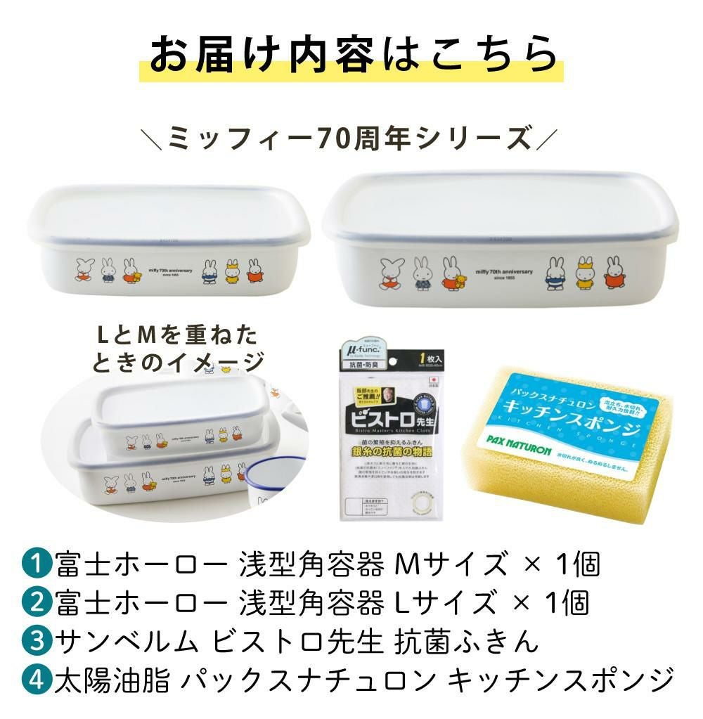 他の画像を見る ミッフィー70周年限定デザインのホーロー製用品でキッチンを彩ります レトロ な 紺色 デザイン と ミッフィー柄 の 組み合わせがおしゃれで プレゼント や 贈り物 におすすめです 富士ホーロー ミッフィー70周年シリーズ 保存容器 浅型角容器 キャニスター MF70-M・ MF70-L M&L 2種 ふきん スポンジ 4点セット クーポン対象外 販売価格 ¥ 5,230 税込 在庫切れ 詳細を見る お気に入りに登録する (0件)