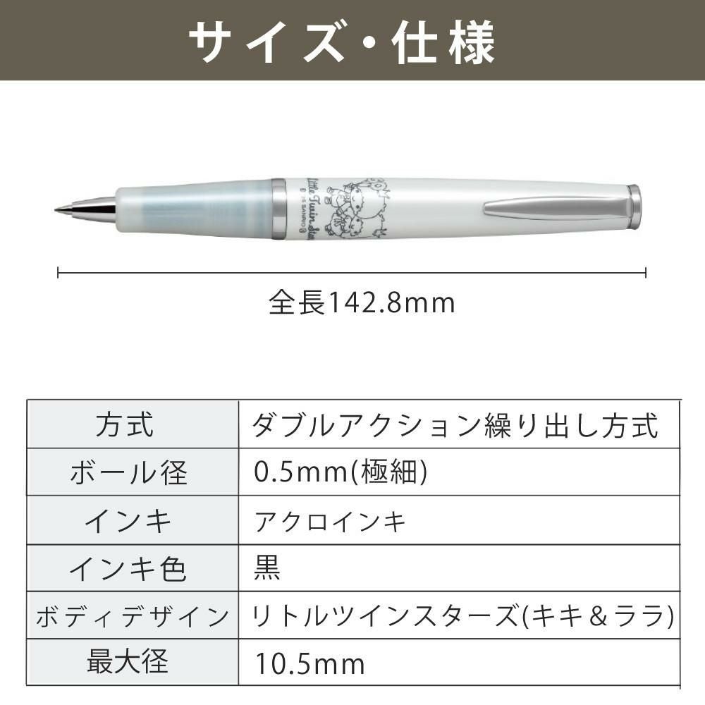 他の画像を見る 50周年記念を迎えた「リトルツインスターズ(キキ&ララ)」を祝うオリジナルデザイン パイロット ボールペン タイムライン リトルツインスターズ BTL5S25-TS 限定 キキララ 8日3%OFFクーポン 販売価格 ¥ 6,480 税込 在庫切れ 詳細を見る お気に入りに登録する (0件)