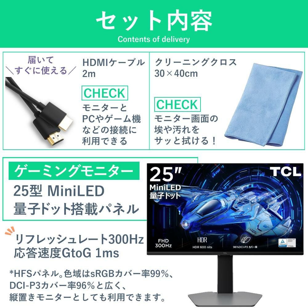 他の画像を見る 解像度フルHD リフレッシュレート300Hz で残像が少ない TCL ゲーミングモニター 25インチ 液晶モニター 300Hz G64シリーズ 25G64 HDMIケーブル2m 液晶画面用クロス付き 3点セット 8日3%OFFクーポン 販売価格 ¥ 31,000 税込 在庫切れ 詳細を見る お気に入りに登録する (0件)