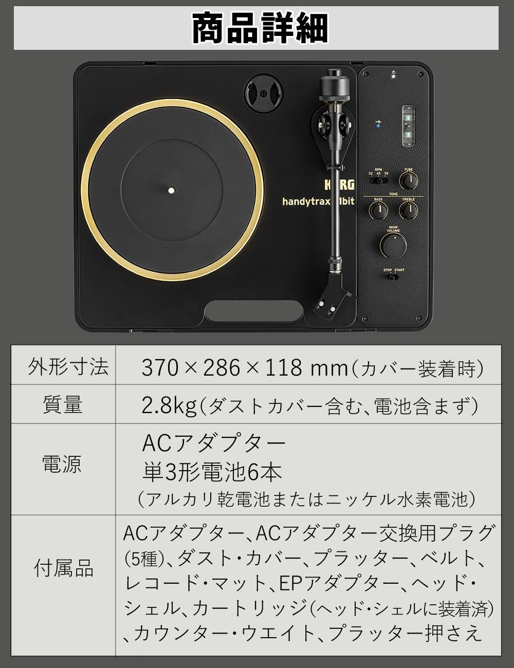 他の画像を見る ポータブル 軽量設計 USB接続 録音対応 電池駆動 高精度再生ベルトドライブ 安定ピッチ カートリッジ交換可 ダストカバー付属 PHONO出力 サブプレーヤー どこでも再生 コルグ handtraxx 1bit ポータブル・レコードプレーヤー ヘッドホン セット KORG(ラッピング不可) 週末2%OFFクーポン 販売価格 ¥ 128,700 税込 カートに入れる お気に入りに登録する (0件)
