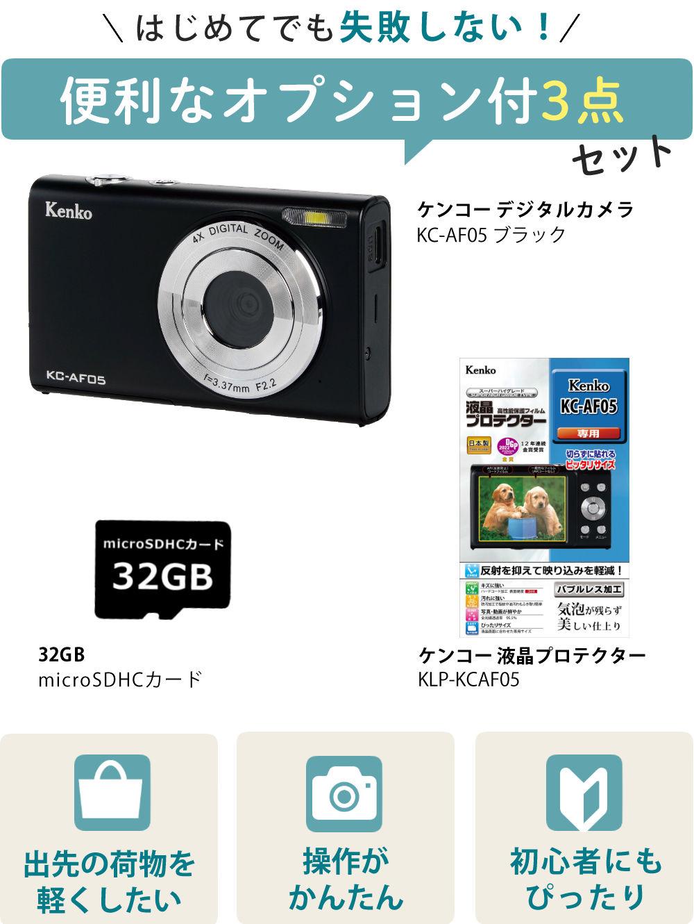 他の画像を見る 一緒に出掛けるおさんぽカメラ スマホ苦手なお年寄り、修学旅行に持っていきたい小中学生にオススメ Kenko ケンコー デジタルカメラ KC-AF05 ブラック SD・液晶保護フィルム付き 3点セット 週末2%OFFクーポン 販売価格 ¥ 11,800 税込 カートに入れる お気に入りに登録する (0件)