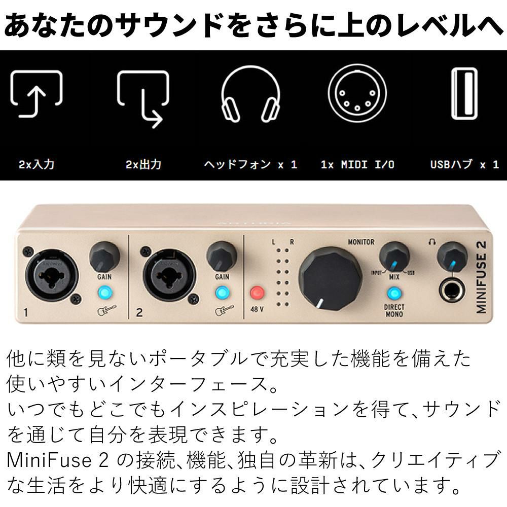 他の画像を見る 110dB ダイナミックレンジ -129dB ノイズ低減 24bit 192kHz 48Vファンタム Hi?Z コンボジャック MIDI入出力 USBハブ 250mA USB?Aポート Arturia MiniFuse USB-C オーディオ&MIDIインターフェイス Champagne Edition アートリア 週末2%OFFクーポン 販売価格 ¥ 17,930 税込 カートに入れる お気に入りに登録する (0件)