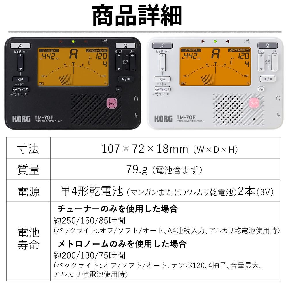 他の画像を見る コンパクトなボディに機能満載 チューナーとメトロノームが一体化した TM シリーズ 待望のニュー・モデル、TM-70F! KORG チューナー メトロノーム TM-70F ブラック 高精度 練習用 TM-70F BK コンタクトマイク 単四電池 5点セット コルグ(ラッピング不可) 販売価格 ¥ 7,980 税込 カートに入れる お気に入りに登録する (0件)