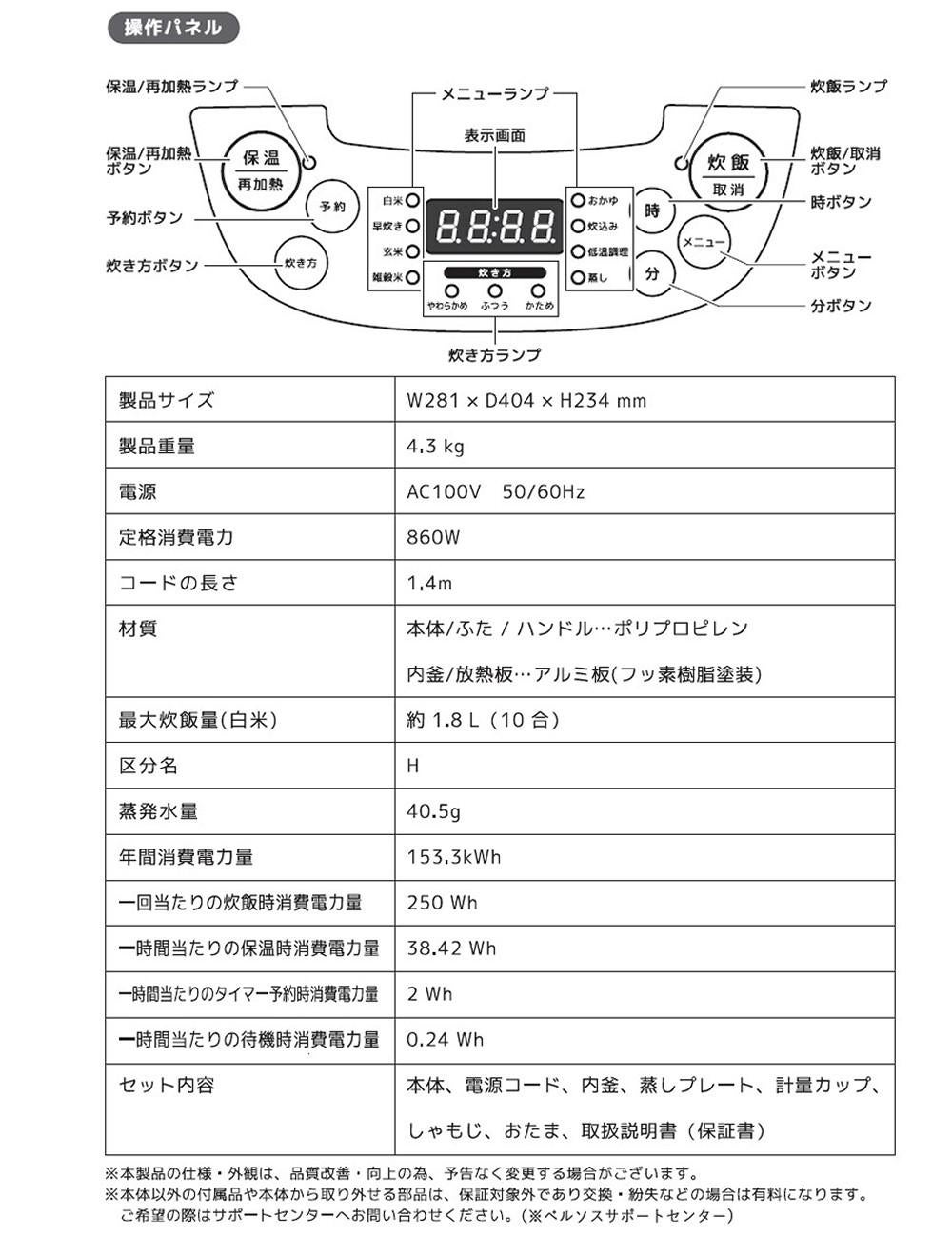 他の画像を見る ブラック ホワイト 1.8L炊飯 大容量炊飯器 10合炊飯器 ベルソス 炊飯器 10合炊飯器 ホワイト ブラック 1升 大容量 マイコン VS-KE24 VERSOS(ラッピング不可) 販売価格 ¥ 7,590 税込 カートに入れる お気に入りに登録する (0件)