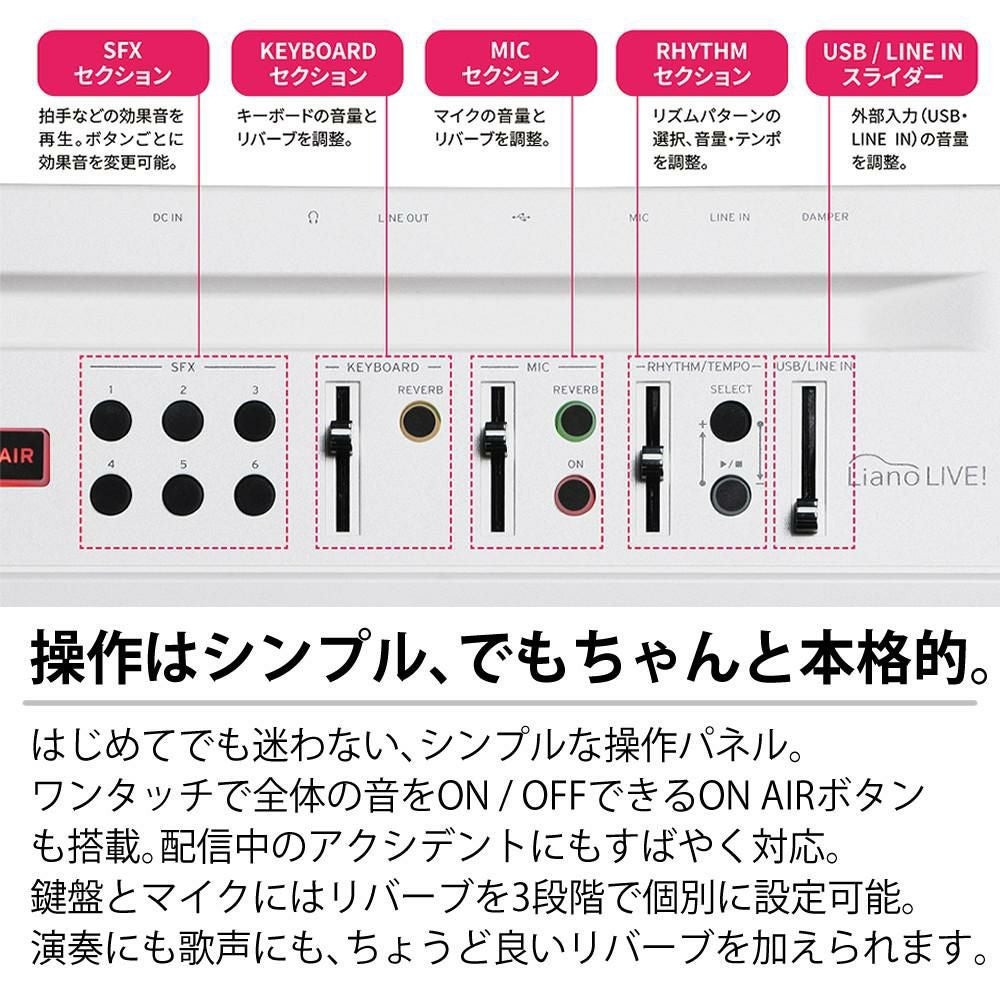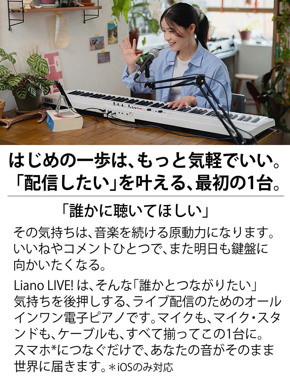 他の画像を見る ライブ配信機能 MIDI 録音 ソフトバンドル 音楽制作 ポータブル SNS投稿 KORG デジタルピアノ ライブストリーミングピアノ Liano L1 LIVE オールインワン電子ピアノ(ラッピング不可) 28日3%OFFクーポン 販売価格 ¥ 59,950 税込 カートに入れる お気に入りに登録する (0件)