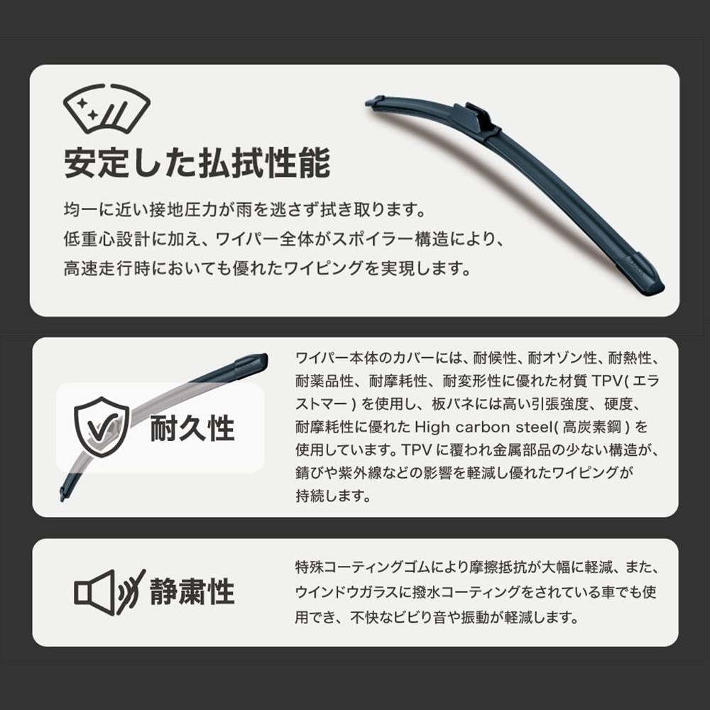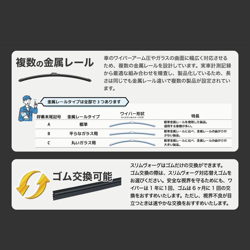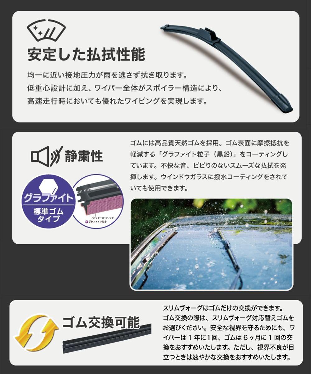 他の画像を見る フロント リア セット交換 PIAA スリムヴォーグ グラファイトワイパー ワイパーブレード 純正対応 交換用 スズキ スペーシア スペーシアギア (H29.12~R5.10) PIAA スリムヴォーググラファイトワイパー フロント用&リヤ専用スーパーグラファイトワイパー 3本セット WSVG48C WSVG48C WGW25RL 28日3%OFFクーポン 販売価格 ¥ 5,980 税込 カートに入れる お気に入りに登録する (0件)