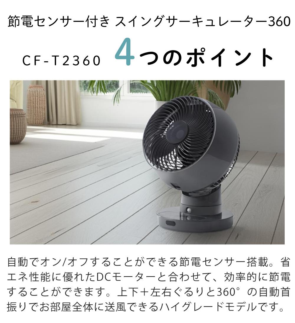 他の画像を見る サーキュレーター 扇風機 衣類乾燥 自動首振り 360度送風 省エネ リモコン付き タイマー付き 風量調整 コンパクト お手入れ簡単 メモリー機能 空気循環 グレー スリーアップ サーキュレーター 節電センサー付 DCスイングサーキュレーター360 グレー DCモーター CF-T2360(ラッピング不可) 28日3%OFFクーポン 販売価格 ¥ 9,680 税込 カートに入れる お気に入りに登録する (0件)