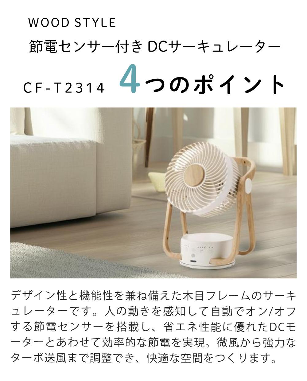他の画像を見る 最大24畳 魅せるサーキュレーター プレゼントにもおすすめ 木目 おしゃれ リビング エアコンとの併用で効率よく空気を循環させる センター搭載 DCモーター スリーアップ サーキュレーター DCモーター ウッドスタイル 節電センサー付き CF-T2314 28日3%OFFクーポン 販売価格 ¥ 14,080 税込 カートに入れる お気に入りに登録する (0件)