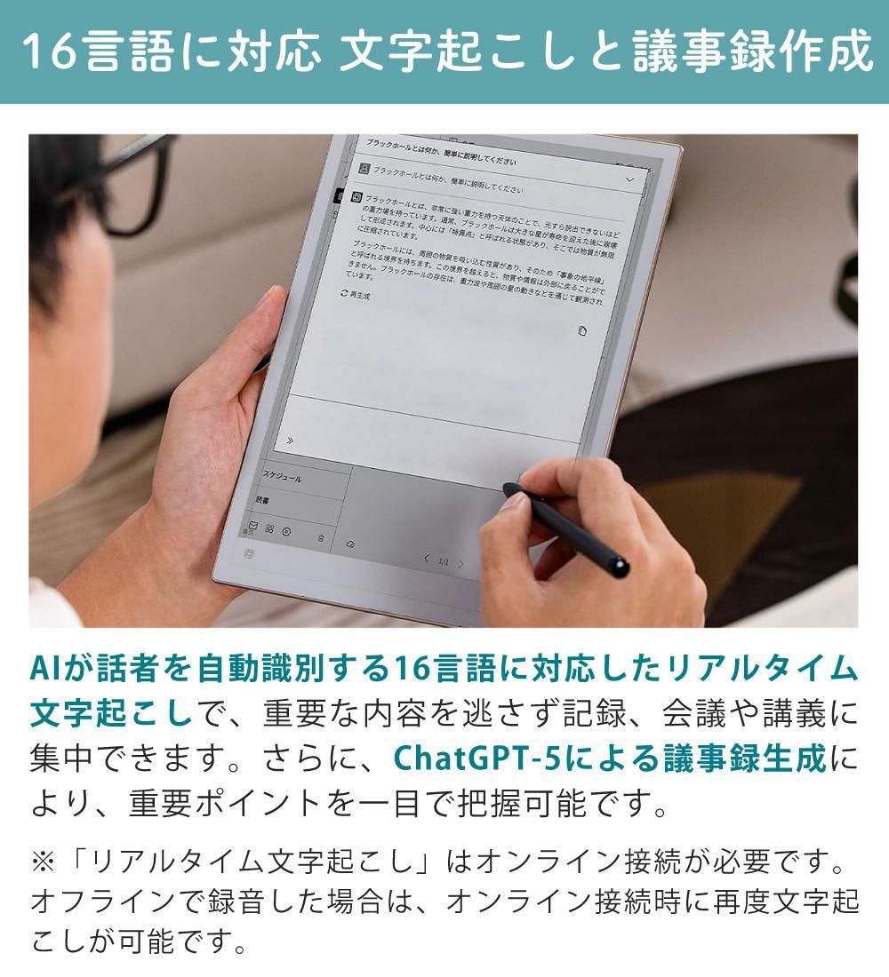 他の画像を見る 録音・手書き・要約・翻訳がこれ1台!GPT-5モデル搭載で仕事効率爆上げ。AIが議事録を自動生成し、紙のような書き心地で生産性を革新する電子ノート。 iFLYTEK スマートノート 電子ノート AINOTE2 10.65インチ AIスマートノート アイフライテック 音声文字起こし 手書きノート デジタルノート ビジネス 軽量 薄型 保存対応 Android14搭載 ケース対応 (4色カラー選択式)セット 販売価格 ¥ 109,900 税込 カートに入れる お気に入りに登録する (0件)