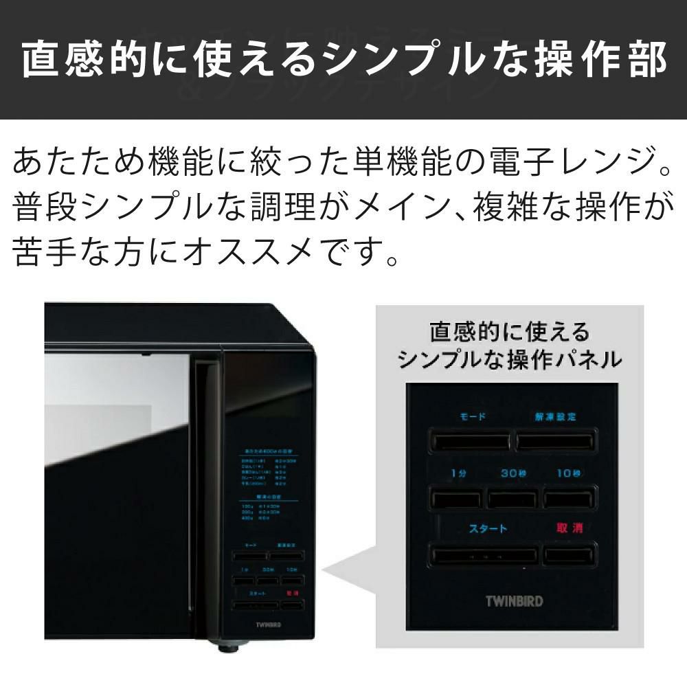 他の画像を見る フラット庫内でお手入れしやすい単機能電子レンジ。押すだけのシンプル操作と見やすい液晶表示、ブラックデザインが魅力。 ツインバード 電子レンジ ibistory ミラーガラスフラット電子レンジ DR-4259B 3点セット(ラッピング不可)(熨斗対応不可) クーポン対象外 販売価格 ¥ 16,800 税込 カートに入れる お気に入りに登録する (0件)