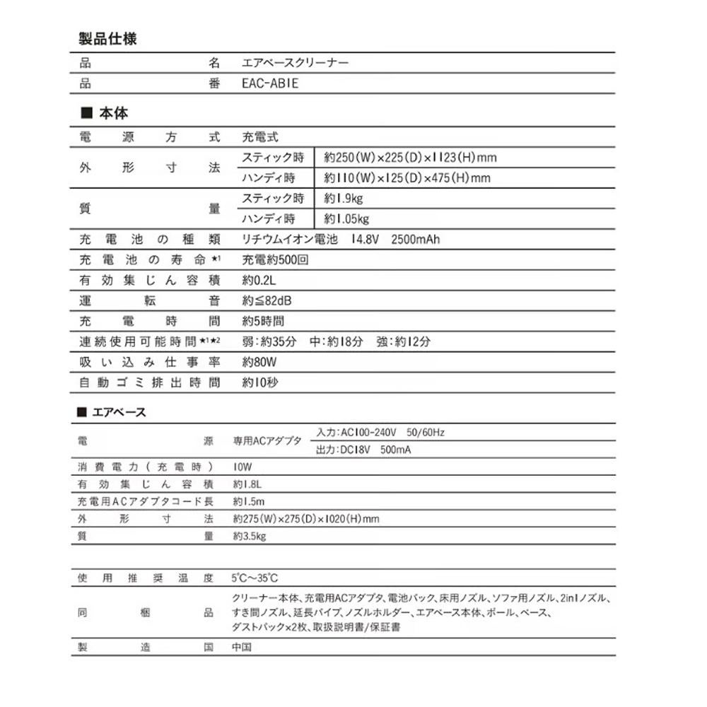 他の画像を見る 自動ごみ排出機能付き 掃除機 コードレス エアベースクリーナー EAC-AB1E-BE ベージュ クリーナー(ラッピング不可) 28日3%OFFクーポン 販売価格 ¥ 22,800 税込 カートに入れる お気に入りに登録する (0件)